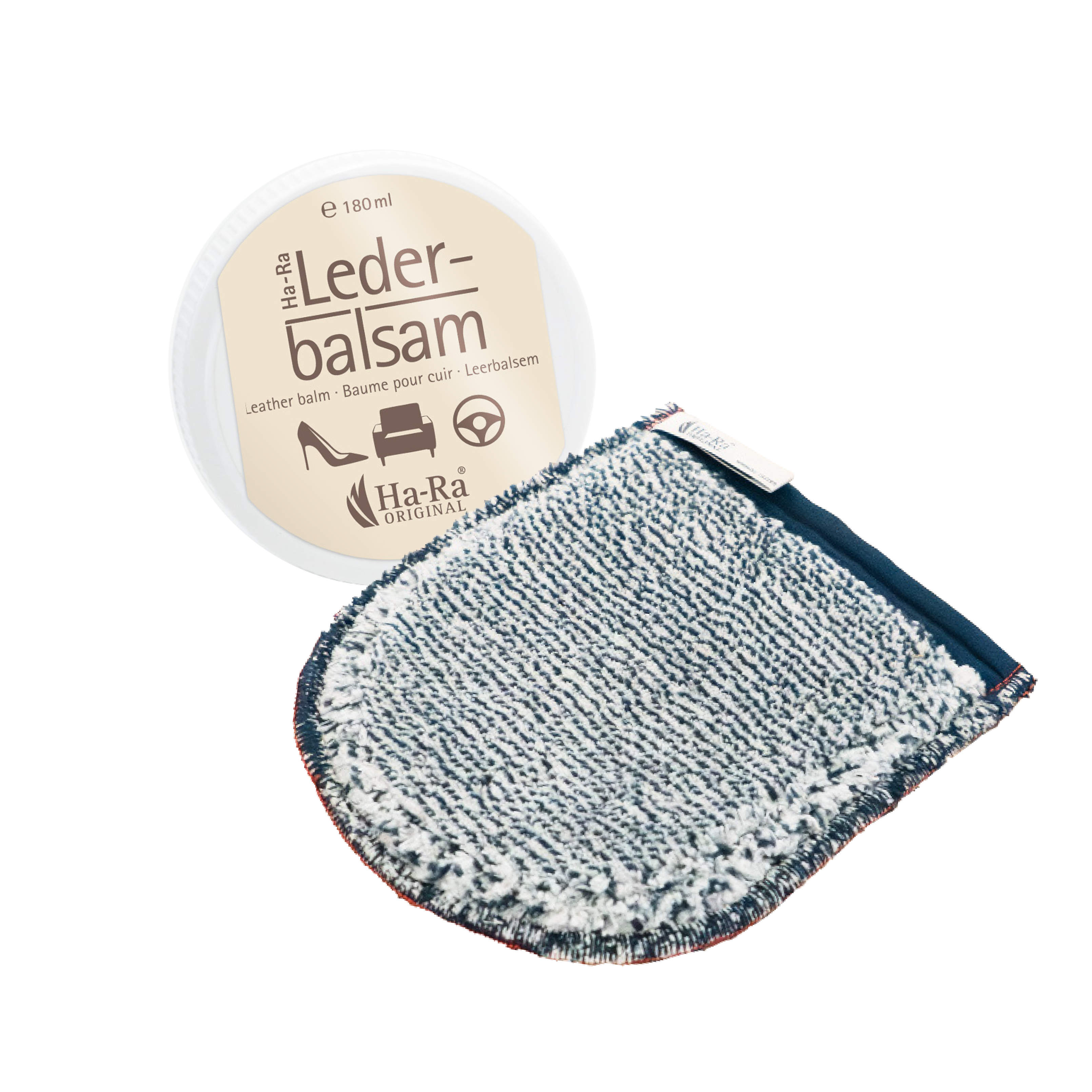 Ha-Ra Leder-Balsam mit dem Ha-Ra Leder-Pflegehandschuh hauchdünn auf die zu behandelnde Fläche auftragen und einwirken lassen. Kein Nachreiben erforderlich.
